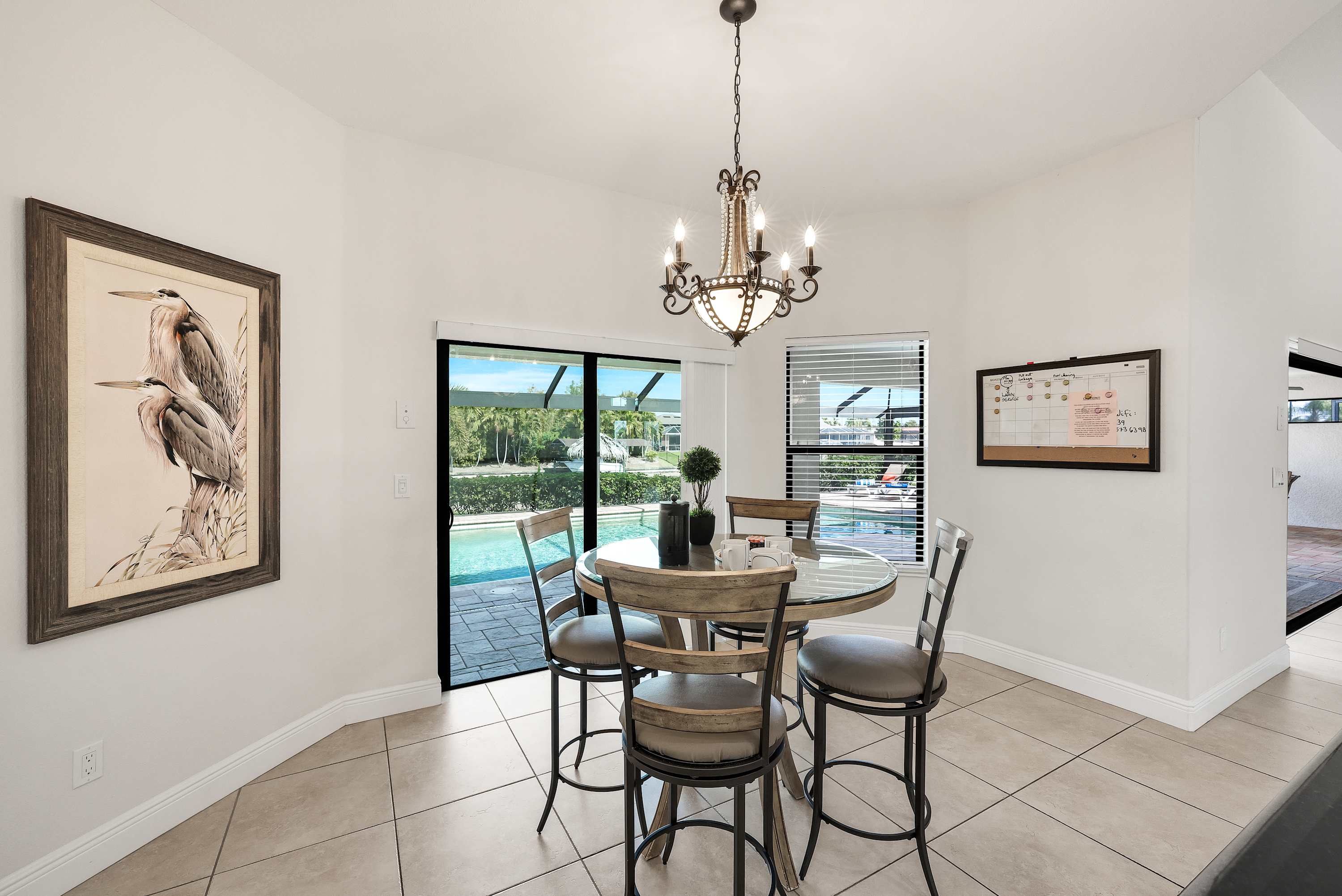 March 2017 stay Everything about our stay was great. The pool and spa are beautiful with lots of space around the pool. The inside space was well laid out and the kitchen was great for cooking and serving to family. It is in a good location with grocery stores and shopping close by and the Cape Coral beach is only 20 minutes from the house. Nice quiet neighborhood. We would definitely stay again.