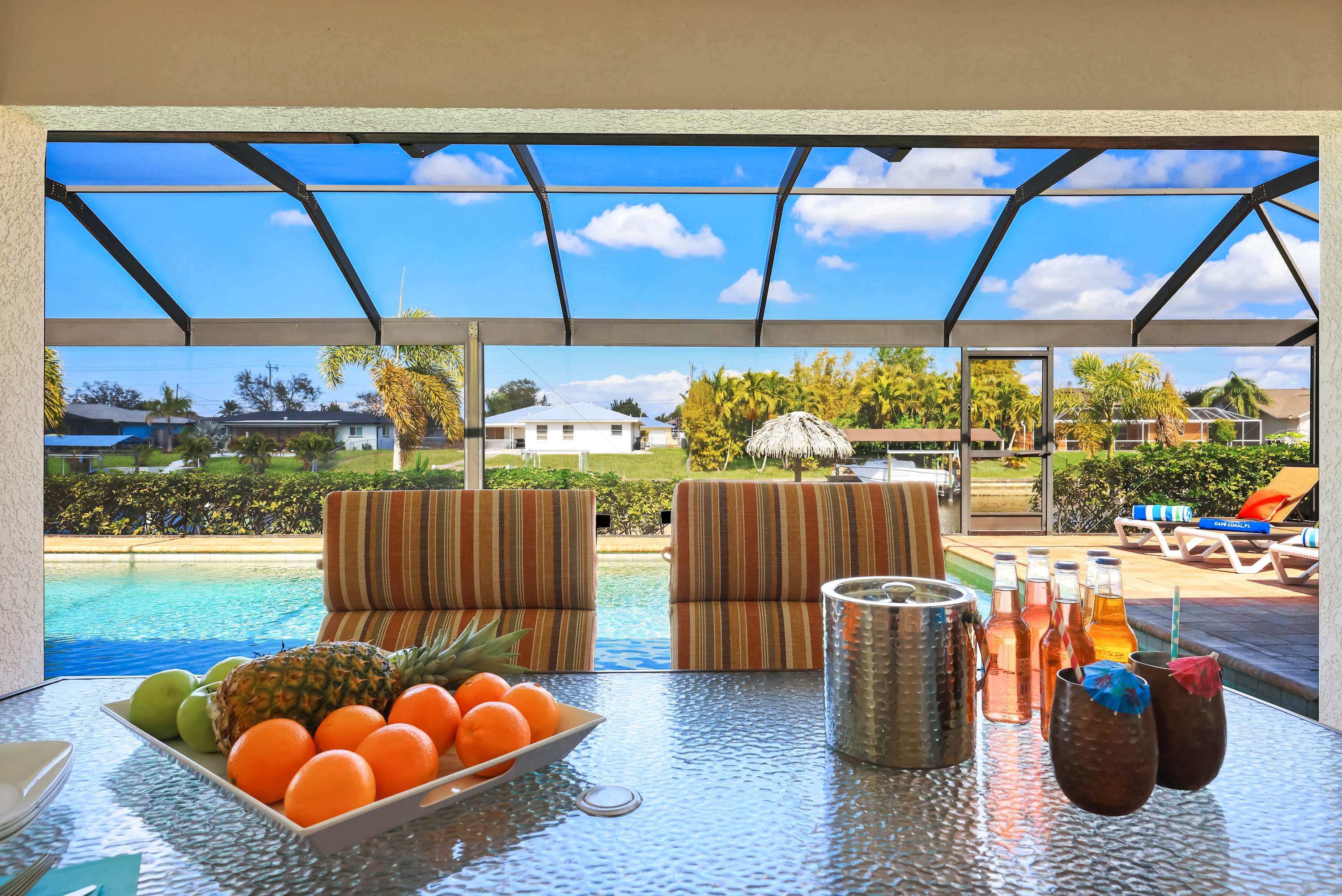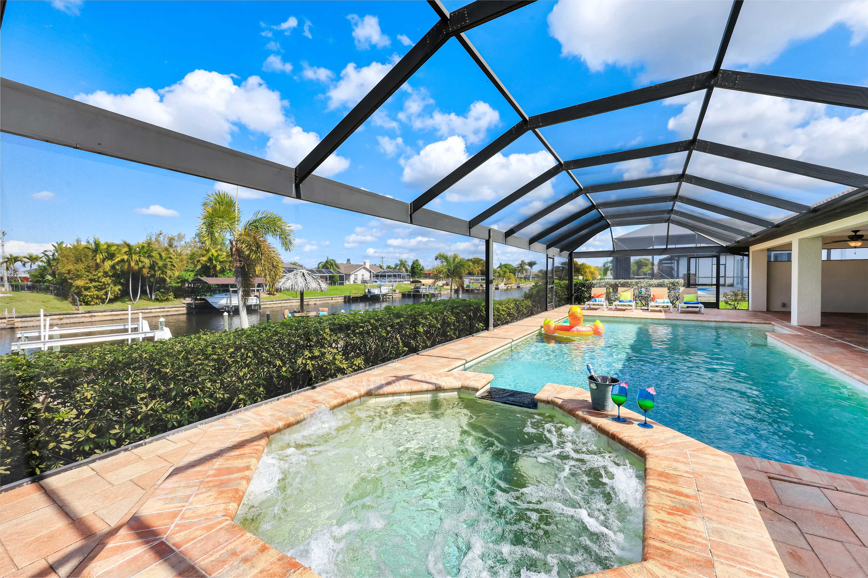 Amazing Cape VORAL Rental They house was great, it was super clean, the kitchen was well stocked with supplies, and the furniture was beautiful. The kids loved the pool and hot tub, we spent lots of time in the outdoor space. The little tiki bar on the dock was great, there was a great breeze sitting f own by the canal. We also saw an alligator in the canal. I would definitely recommend this property to anyone looking to enjoy a vacation in Cape Coral.