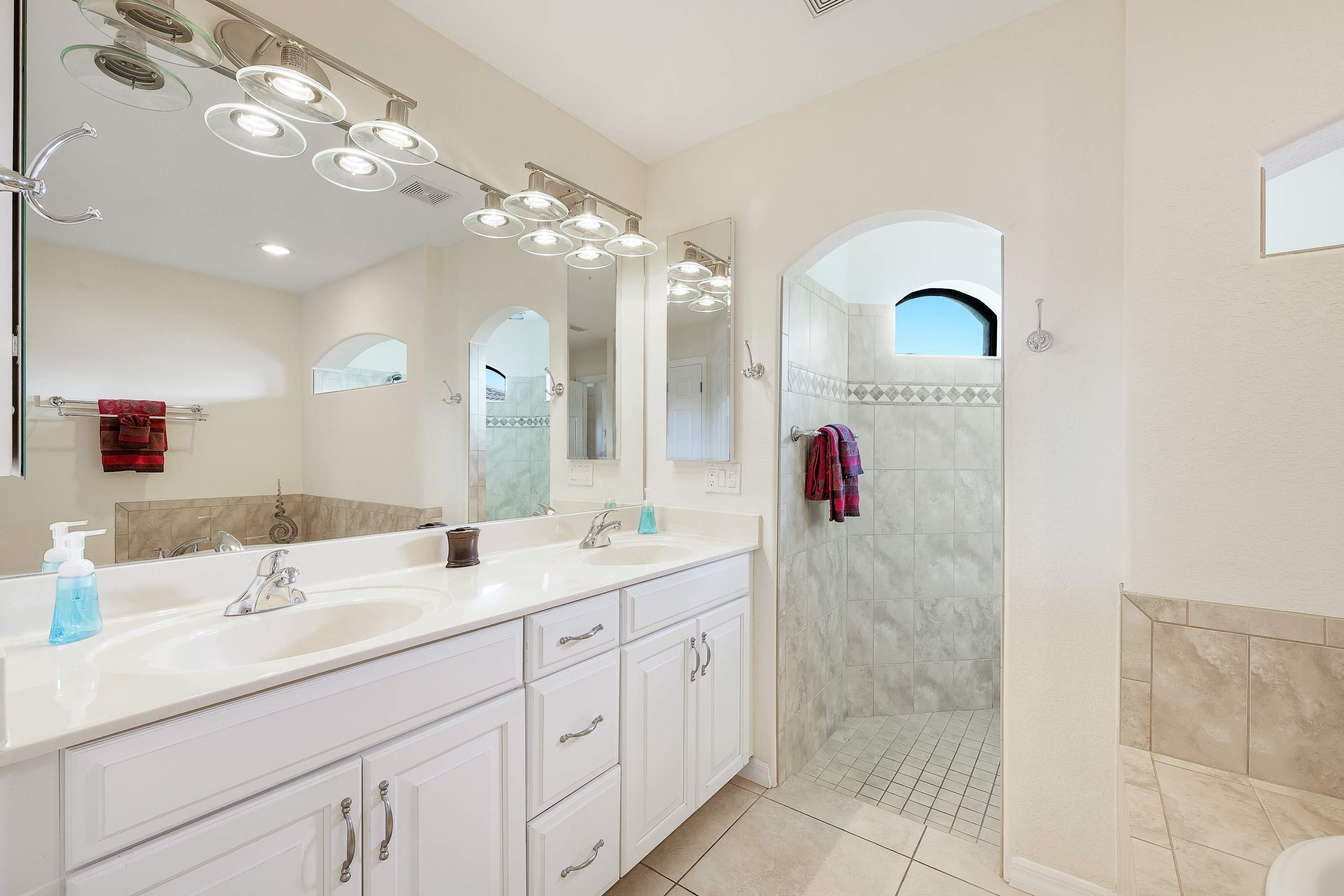The master bathroom with dual sinks