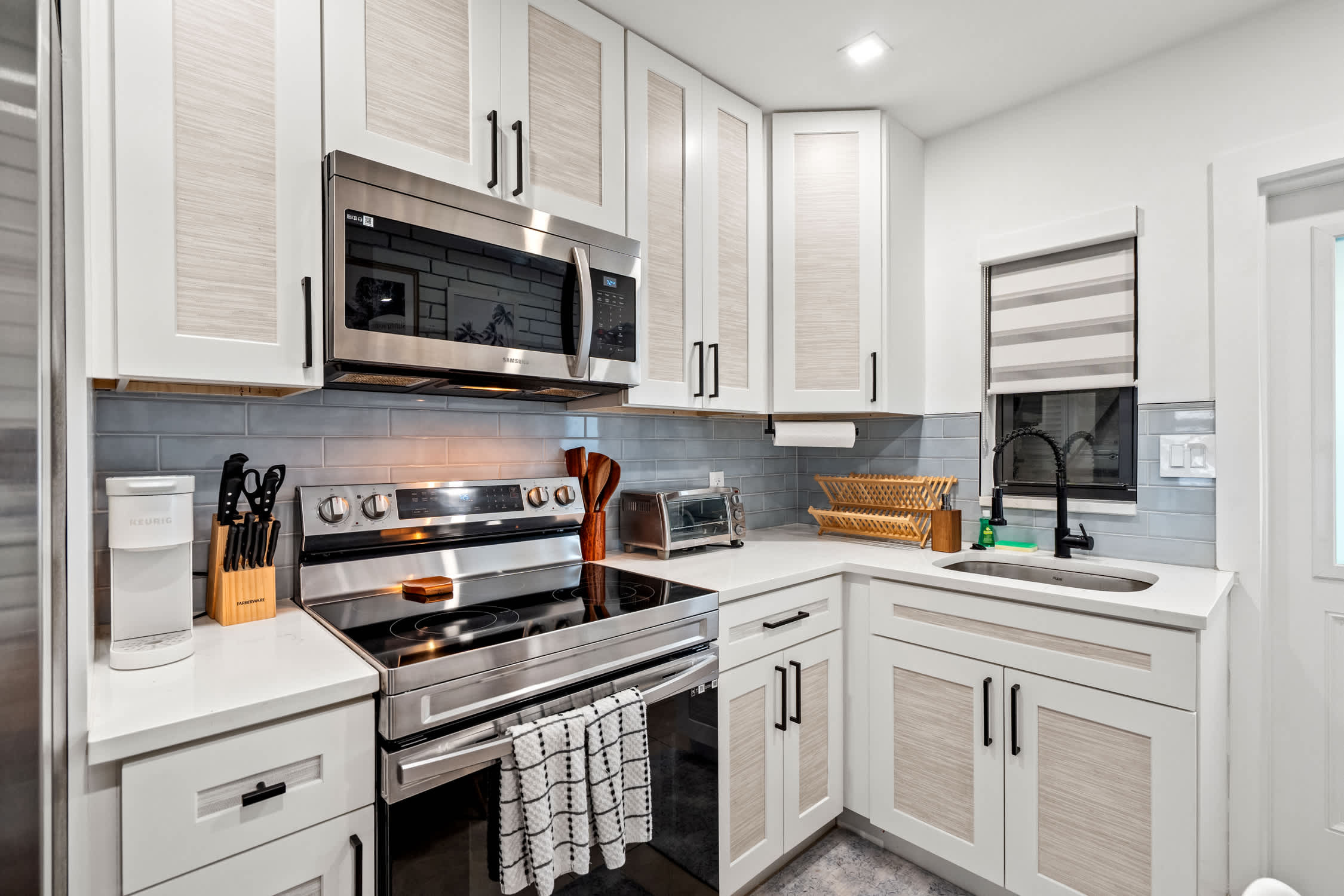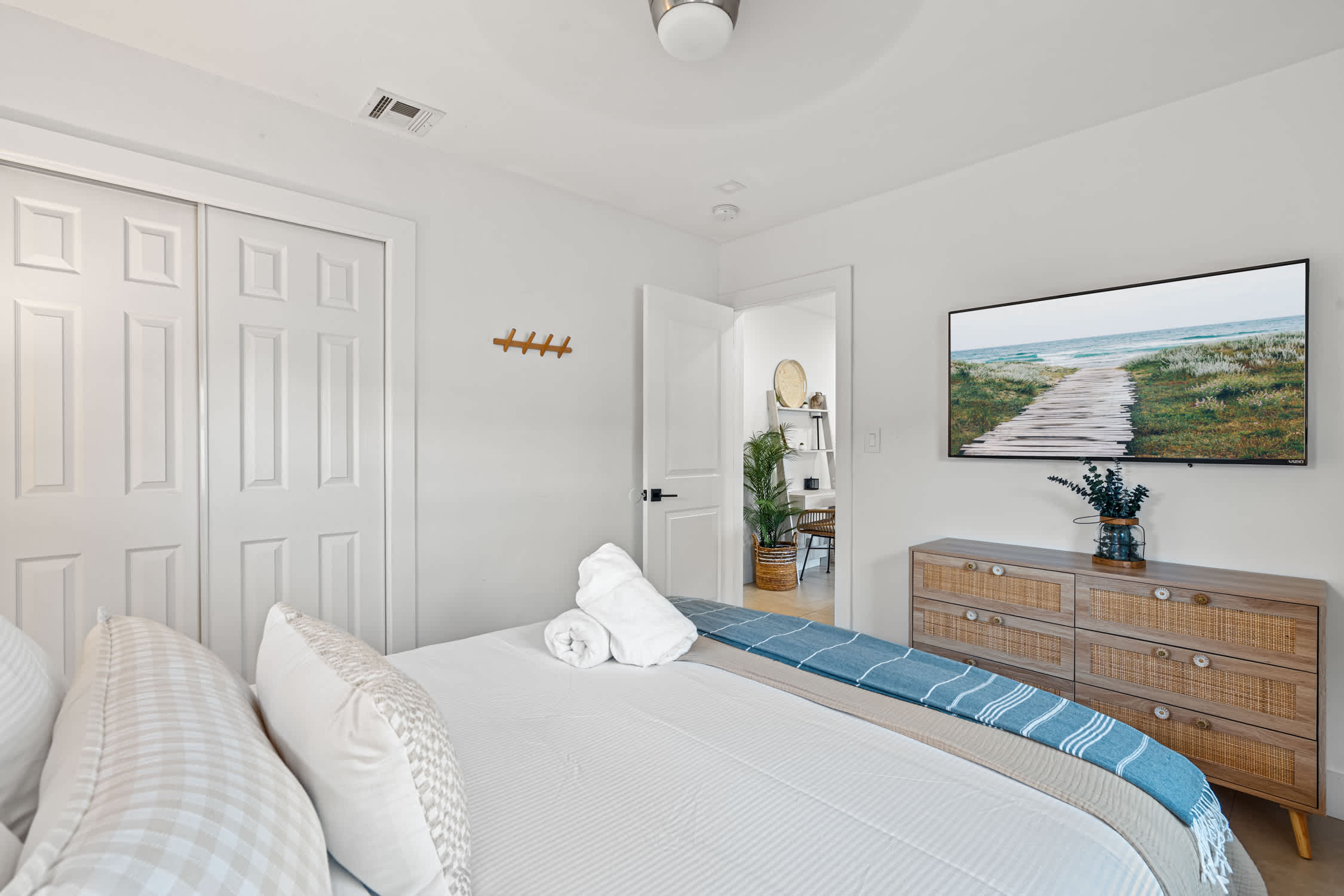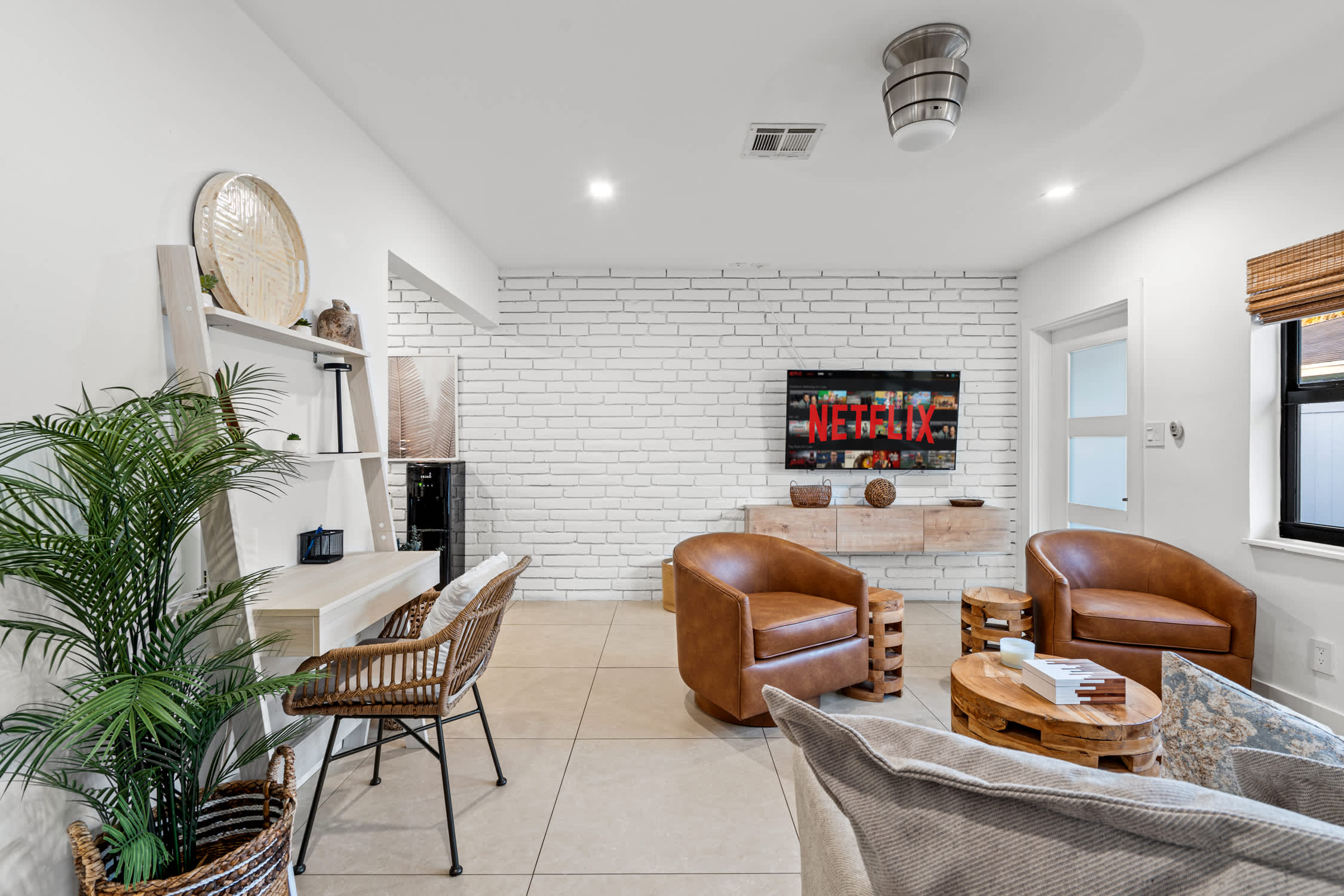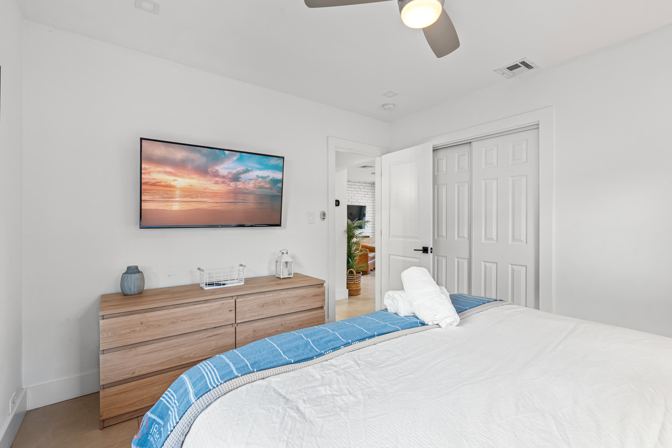 Step inside to discover a bright and thoughtfully designed space featuring: Professionally decorated coastal-chic interiors Central A/C & hurricane-impact windows Smart TVs with Netflix, Hulu & more Hotel-quality linens, plush duvets & Micado Spa bath amenities Tons of family-friendly board games and kids’ toys Two spacious bedrooms, each with a king-size bed Renovated kitchen, bathroom, living room & bedrooms This is the perfect place to unwind after a day at the beach or a night exploring Atlantic Avenue.