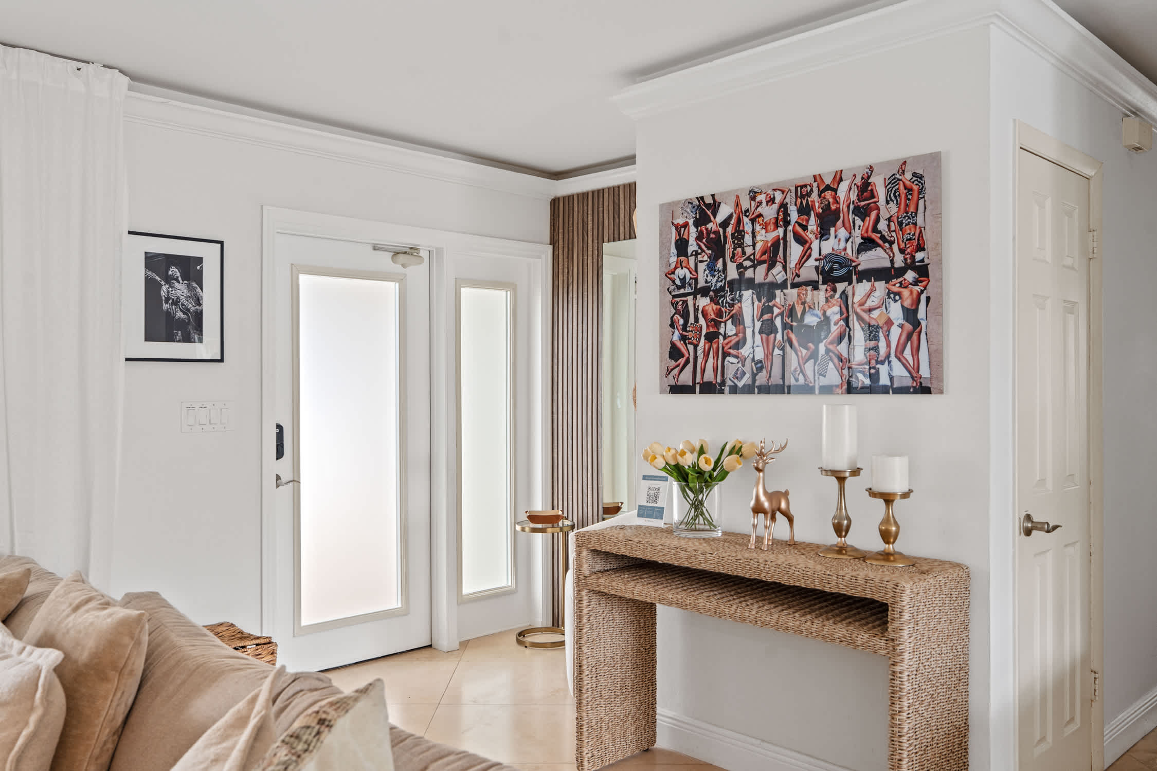 Located just a 10–15 minute walk — or a quick 5-minute bike ride — from the beach, this home offers effortless access to the shoreline and is also just moments from Lauderdale-by-the-Sea’s charming restaurants, cafés, bars, and fishing pier — perfect for a romantic stroll or a fun night out. Step inside and you’ll be greeted by a beautifully curated interior, styled in timeless Restoration Hardware elegance. The formal dining room, adorned with white drapes and marble floors, flows into a chef’s kitchen featuring granite countertops, abundant cabinetry, stainless steel appliances, and both Keurig and drip coffee makers — ideal for morning espresso by the pool.